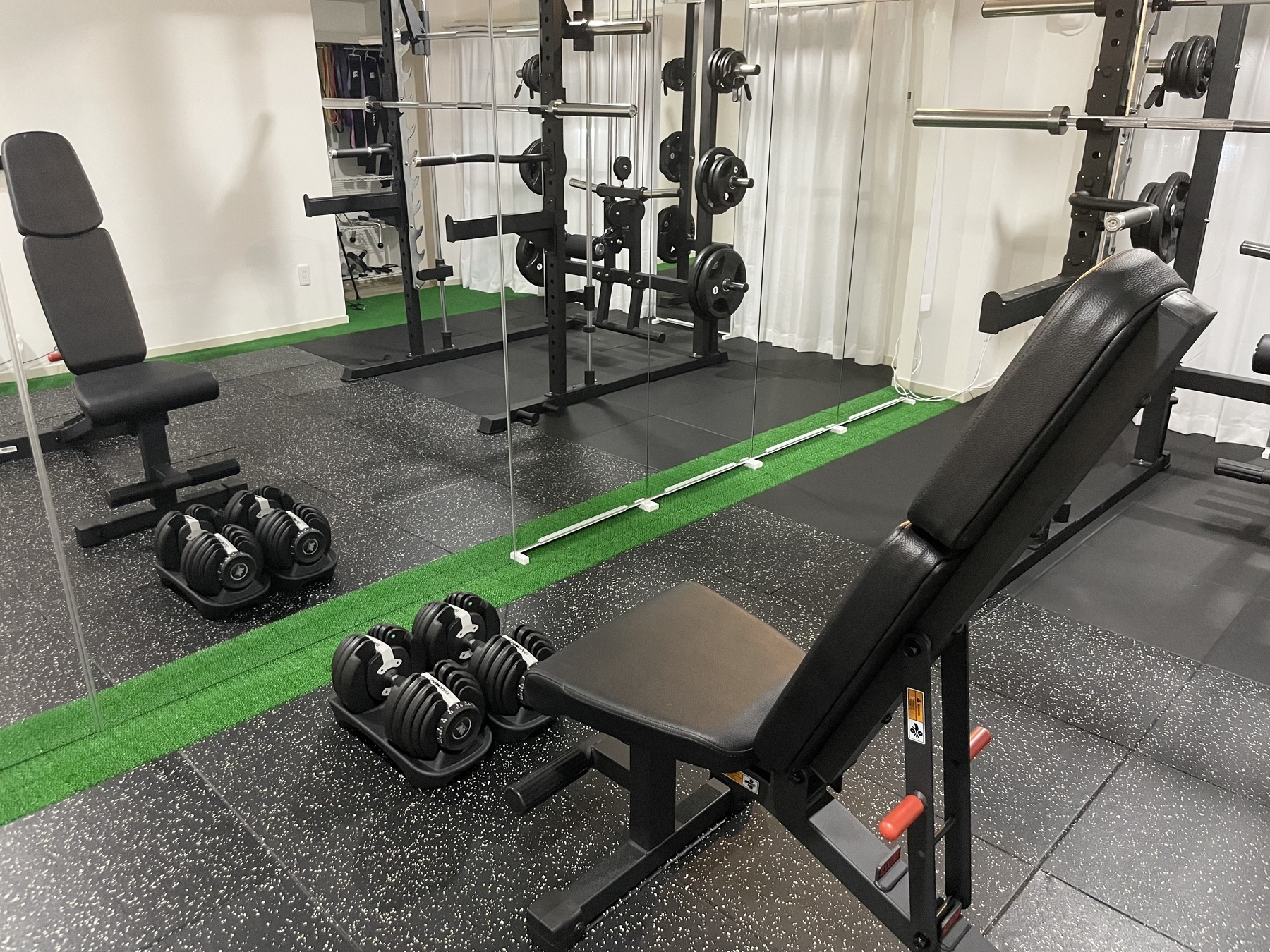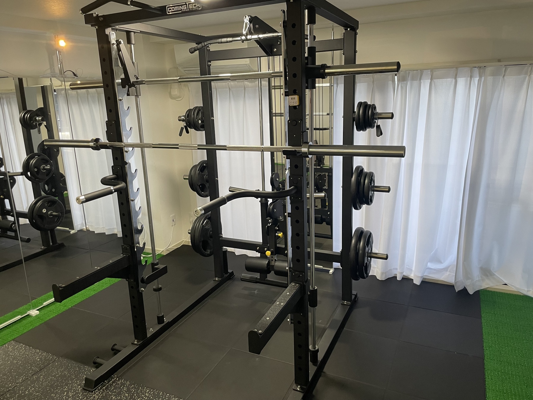 ・オールインワンラックを導入し、胸・背中・脚・腕など全身を効率よく鍛える多種多様な種目に対応。