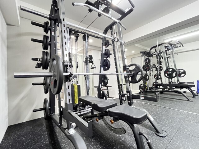 スミスマシン、バーベル、ケーブルトレーニングが可能です。